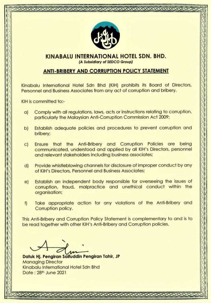 We are committed to conducting our business with integrity, transparency, and accountability. Our policies reflect a zero-tolerance approach towards bribery, corruption, and unethical conduct.